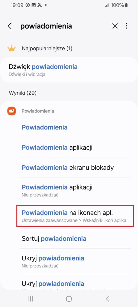 W większości telefonów ustawienia mogą wyglądać podobnie. W przypadku innej ścieżki jak poniżej w wyszukiwarkę można wpisać hasło „powiadomienia”.