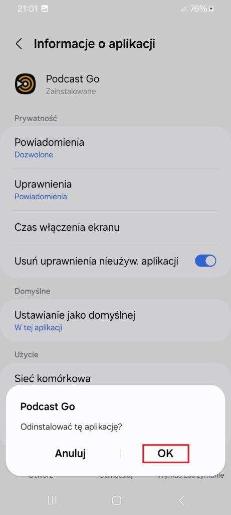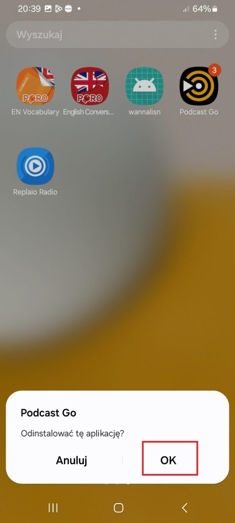 3. Telefon zapyta: „Czy na pewno chcesz odinstalować tę aplikację?”. Kliknij „OK” lub „Odinstaluj”.