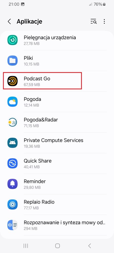 2. Zobaczysz długą listę z różnymi opcjami, przewijaj w dół aż znajdziesz napisz „Aplikacje” lub Menadżer aplikacji”. Kliknij w ten napis.