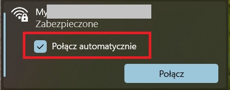 Zanim klikniesz „Dalej” zaznaczcie pole „Połącz automatycznie”. Dzięki temu komputer zapamięta sieć i następnym razem połączy się z nią automatycznie, bez konieczności ponownego wpisywania hasła.