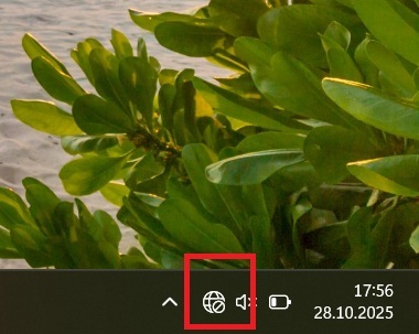 5. Jeśli hasło jest poprawne, komputer po kilku sekundach połączy się z siecią. Ikona kuli ziemskiej w prawym dolnym rogu ekranu zmieni się w symbol wachlarzyka. Od teraz jesteś połączony z internetem.