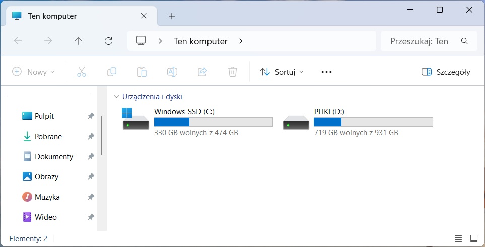 1. Otwórz „Ten Komputer” lub „Eksplorator plików” – żółtą teczkę na pasku zadań.