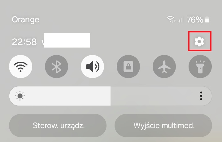 1. Otwórz Ustawienia, czyli ikonkę z kołem zębatym. Najszybciej znajdziesz ją, przesuwając palcem z góry ekranu w dół.