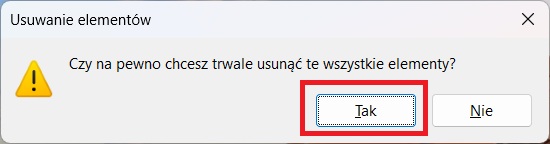 3. Potwierdź, gdy pojawi się pytanie: Czy na pewno chcesz trwale usunąć te elementy?