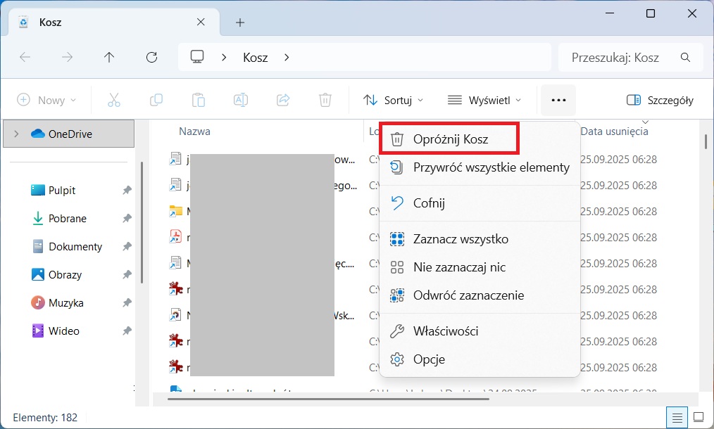 Poniżej opisałem dwa sposoby na usunięcie danych z kosza: