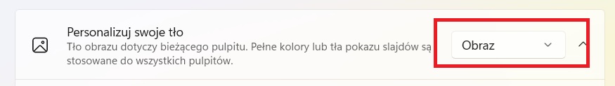 W tym przypadku należy wybrać opcję Obraz, aby na Pulpicie było ustawione konkretne zdjęcie.