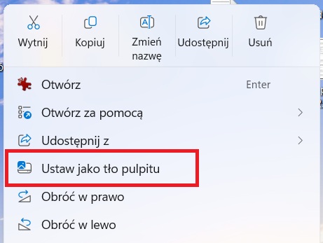 2. Kliknij prawym przyciskiem na pliku zdjęciem i wybierz „Ustaw jako tło pulpitu”.