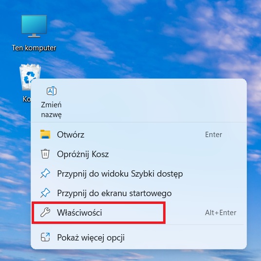 1. Spójrz na Pulpit i poszukaj ikony podpisanej jako Kosz. Zazwyczaj znajduje się ona w lewym górnym rogu ekranu i wygląda jak biurowy kosz na śmieci 🙂