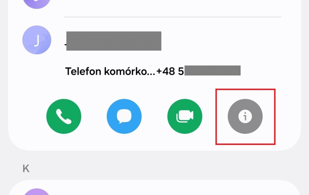 4. Kiedy znajdziesz tę osobę, stuknij w jej nazwę palcem, aby otworzyć szczegóły. W przypadku telefonu Samsung kliknij „i”.