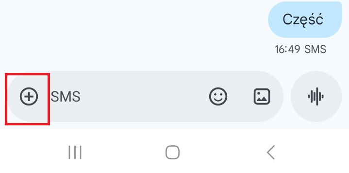 3. Teraz spójrz na dół ekranu, tam gdzie zwykle wpisujesz tekst. Obok pola tekstowego zobaczysz ikonka plusa (+) – kliknij na nią.