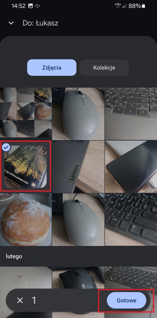 6. Zobaczysz, że na wybranym zdjęciu pojawił się „ptaszek” (zaznaczenie). Teraz kliknij na „Gotowe”, aby potwierdzić.