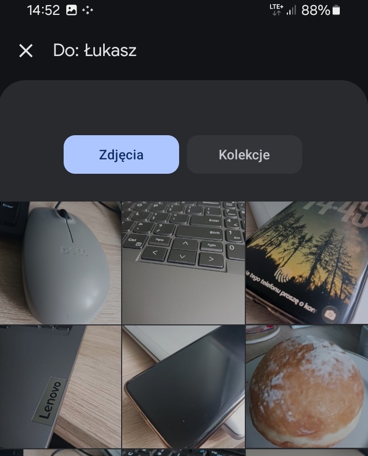 5. Po wybraniu opcji „Galeria” Twój telefon pokaże Ci ostatnio zrobione zdjęcia. Przewiń je i stuknij palcem w to, które chcesz wysłać.