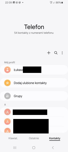 1. W zależności od marki telefonu wygląda może się różnić. Najprościej to wejdź w zieloną słuchawkę i kliknij „plusik” – dodaj kontakt. Może on znajdować się np. u góry. W przykładowym telefonie Samsung „plus” znajduje się na górze.