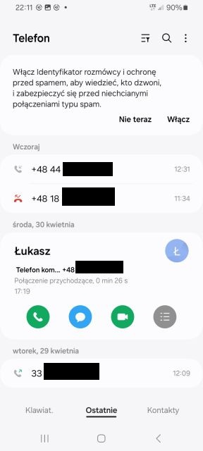 - Na dole może również znajdować się ikona z nazwą „Ostatnie” lub „Ostatnie połączenia” – pozwala zadzwonić z listy ostatnio wykonanych połączeń