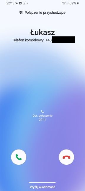Aby odebrać telefon usłyszysz grającą melodyjkę i wibrację telefonu. Aby odebrać telefon w zależności od marki należy kliknąć lub przesunąć zieloną słuchawkę.