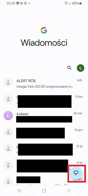 1. Domyślna aplikacja w telefonach z Androidem to „Wiadomości”, która służy do wysyłania SMS-ów oraz MMS-ów. Na ekranie głównym lub w folderze aplikacji znajdziesz ikonę z symbolem dymku lub koperty. Kliknij w nią, by otworzyć aplikację. Zwykle znajduje się na ekranie głównym.