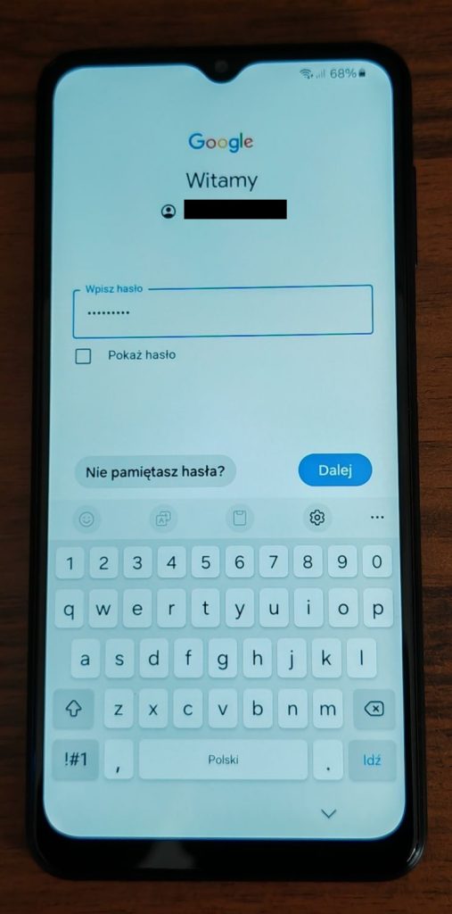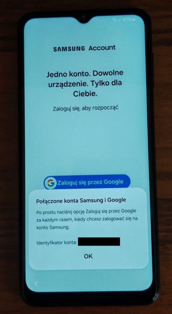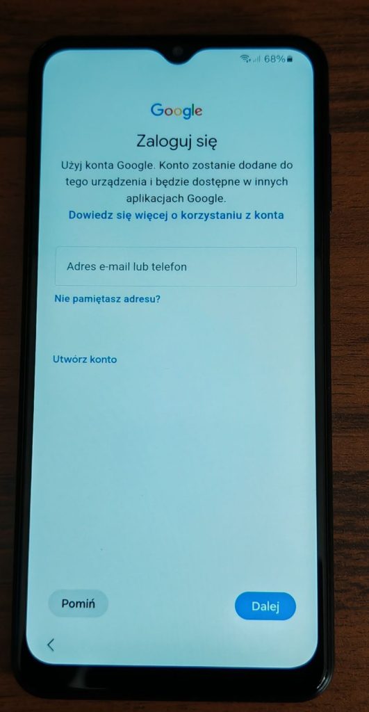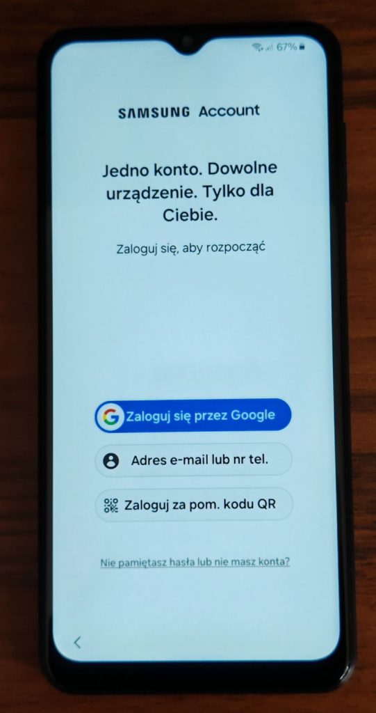 25. Ostatni etap instalacji nowego telefonu w przypadku Samsunga to logowanie się na konto Samsung. W przypadków innych marek krok ten nie będzie występował lub zastąpiony będzie logowaniem do konta danej marki.
