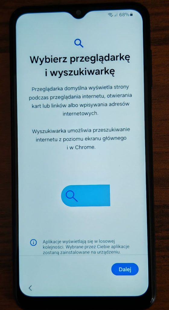 17. Wybierz przeglądarkę i wyszukiwarkę…. Stuknij Dalej.