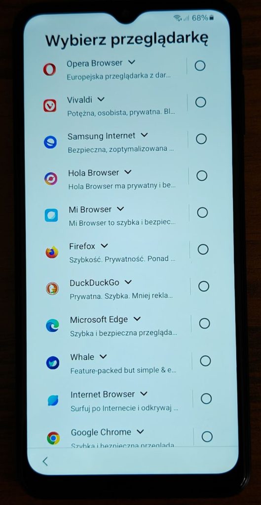 18. Wybierz domyślną przeglądarkę. Możesz wybrać Google Chrome lub inną dowolną wedle preferencji.