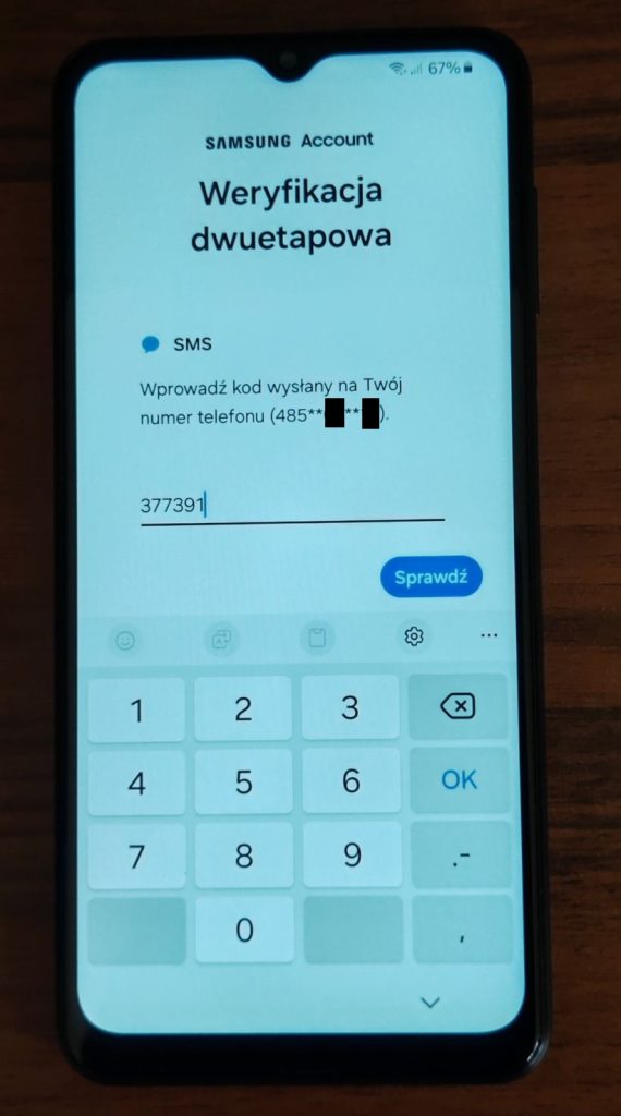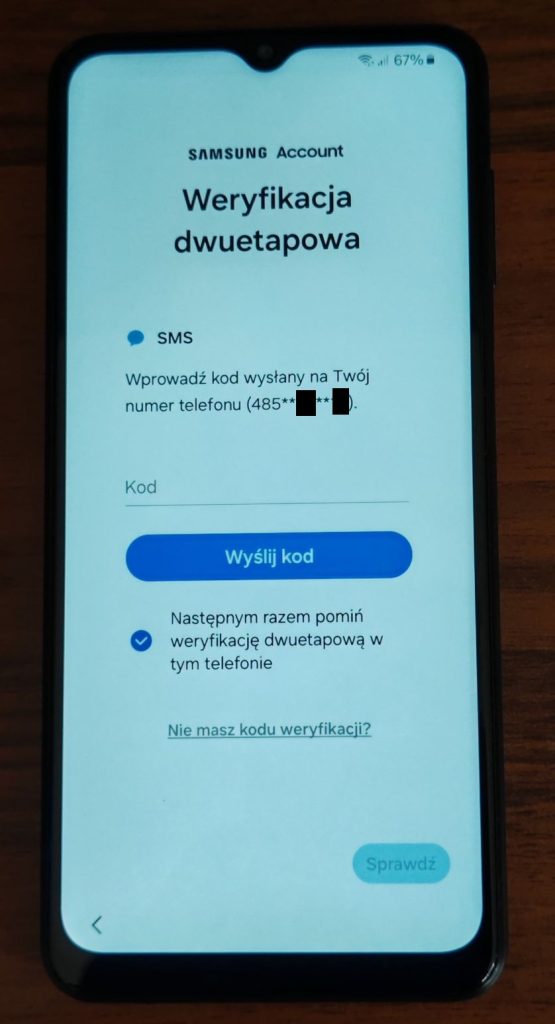 28. W kolejnym kroku nastąpi weryfikacja dwuetapowa, czyli otrzymasz smsa, a następnie otrzymany kod należy przepisać w odpowiednie miejsce poniżej. Zobacz jak to wygląda.