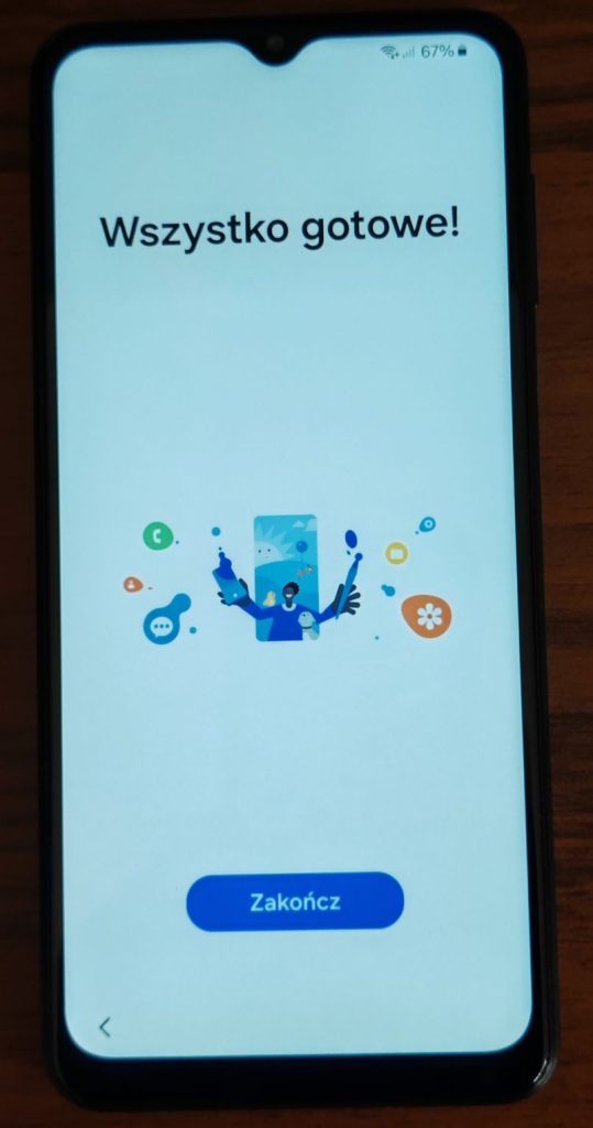 35. Dotarliśmy do końca konfiguracji nowego telefonu Samsung! Stuknij na Zakończ.