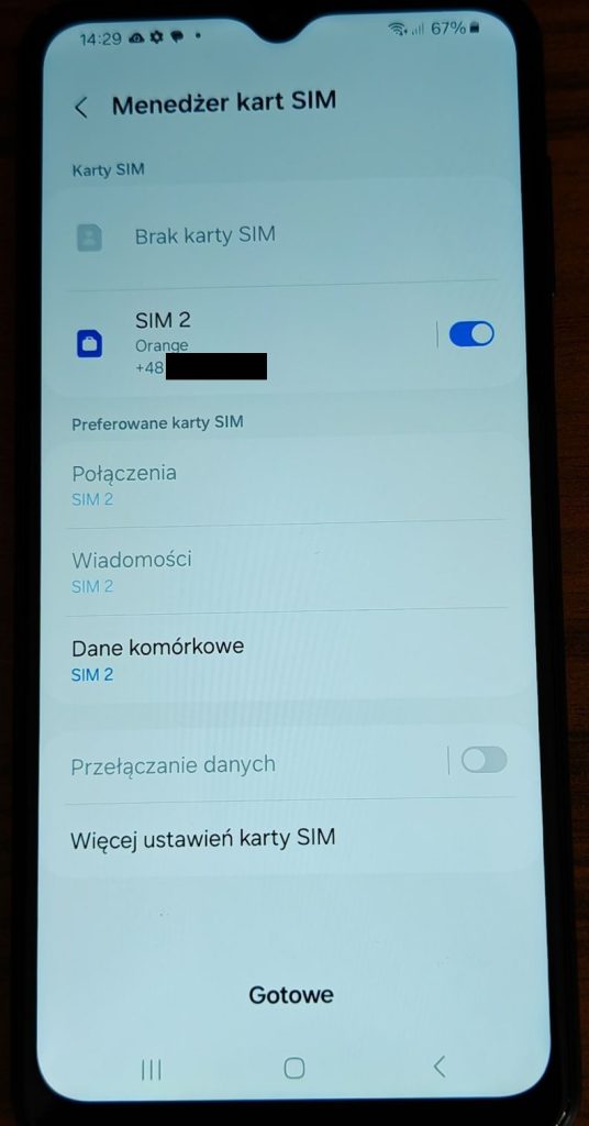 36. Jednak to nie wszystko. Teraz po kliknięciu Zakończ zostałeś przeniesiony do menadżera karty SIM. Tu tylko stuknij Gotowe.